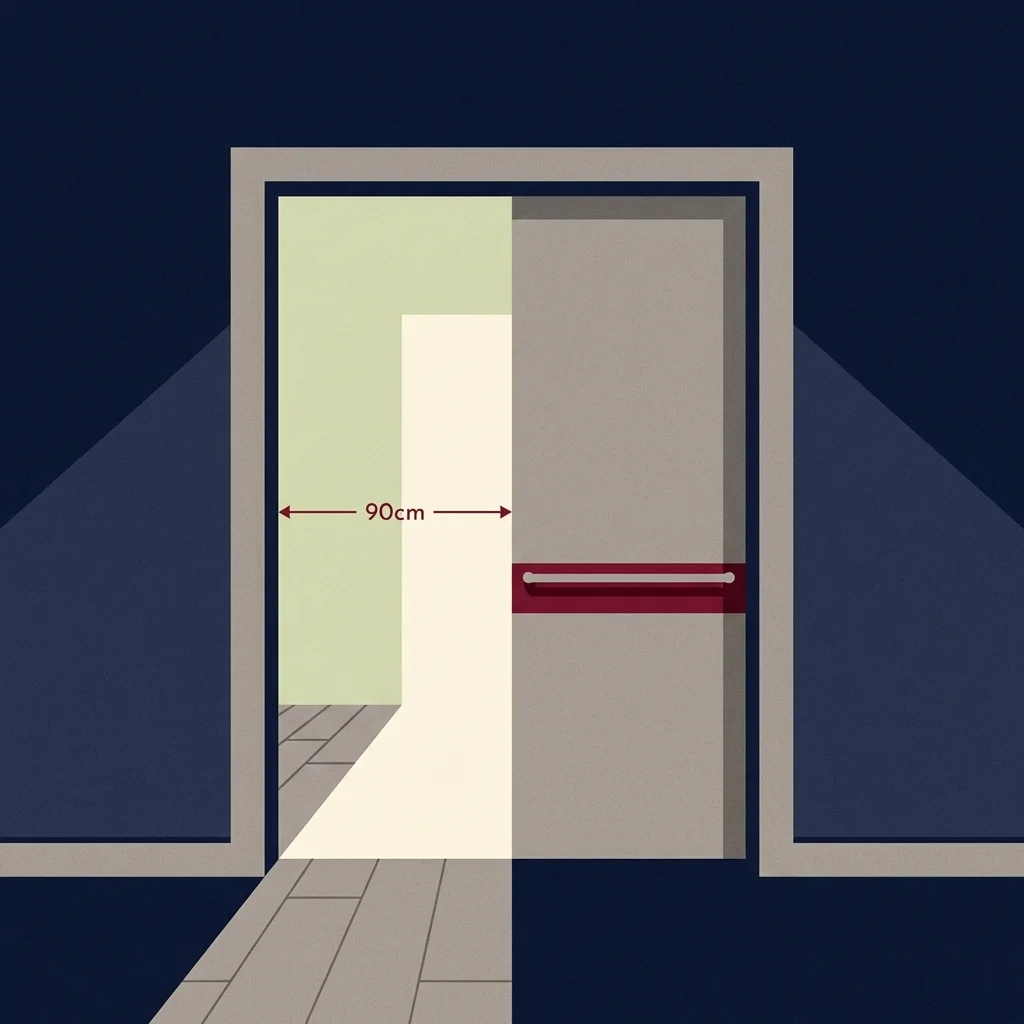 Élargissement des passages de portes intérieures (83 à 90 cm) pour permettre une circulation fluide en fauteuil roulant.