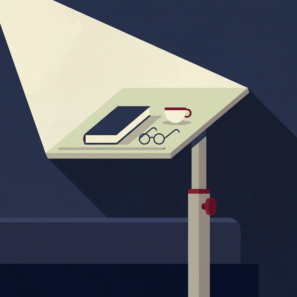 Table à hauteur variable et plateau inclinable pour prendre ses repas, lire ou travailler en toute autonomie depuis le lit.